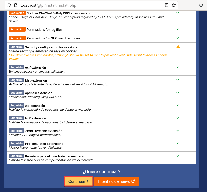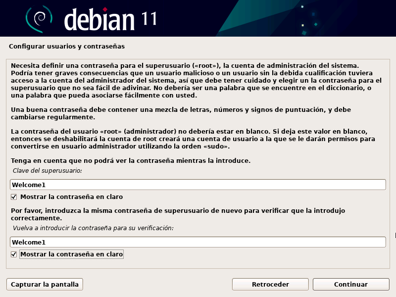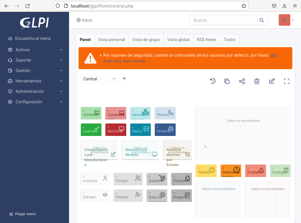 Aquí nos aparecerá un warning porque es recomendable cambiar las contraseñas de los usuarios.