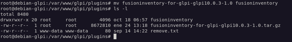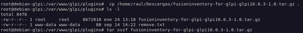 Copiaremos el archivo comprimido en /var/www/glpi/plugins