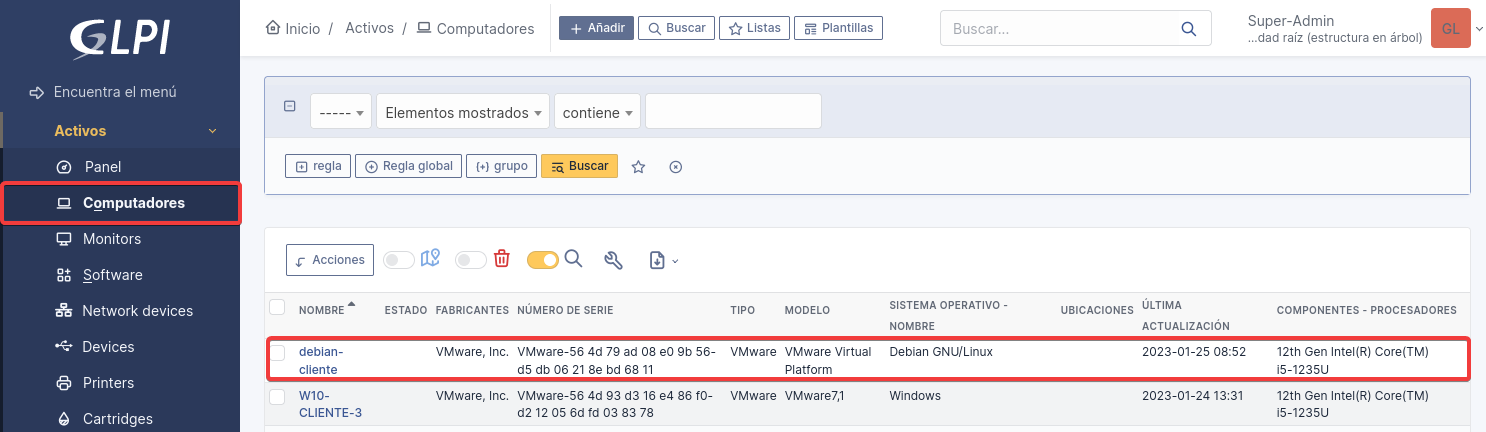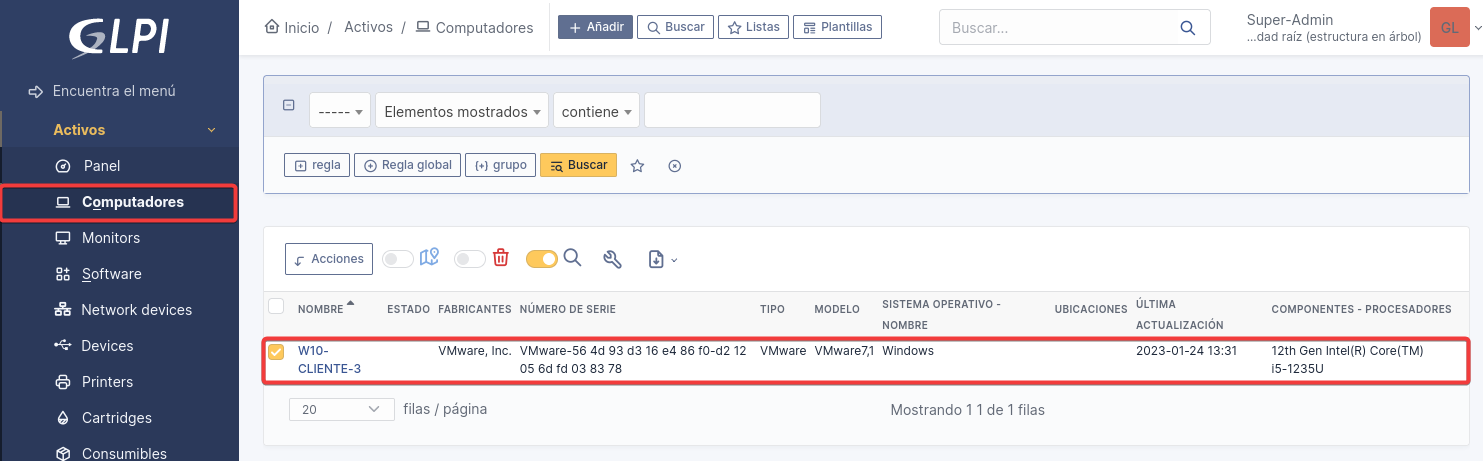 Esperamos un poco y aparecerá el ordenador en el panel de administración.