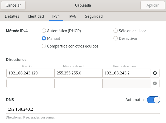 Previamente, le hemos puesto una dirección IP estática a este servidor.