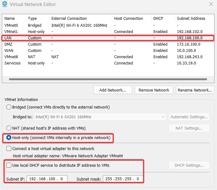Primero, creamos una nueva interfaz de red Custom llamada LAN y no usaremos el DHCP integrado.