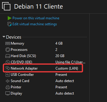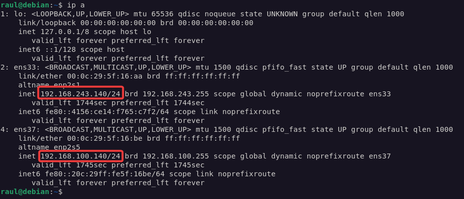 Luego, en una máquina virtual Debian, comprobaremos que tenemos la configuración de red bien.