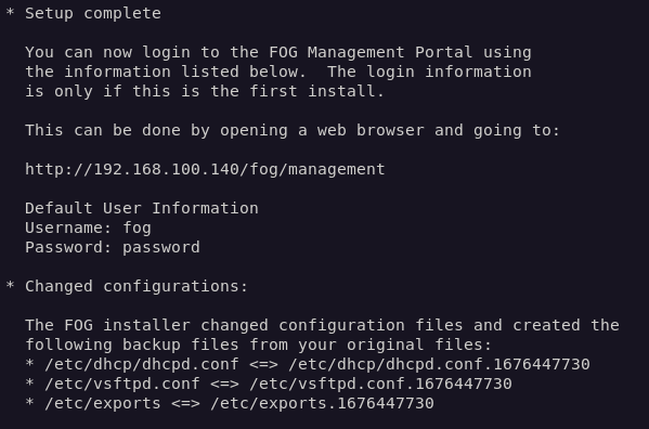 Cuando termine, veremos las credenciales de usuario por defecto para conectarnos al panel de administración web.