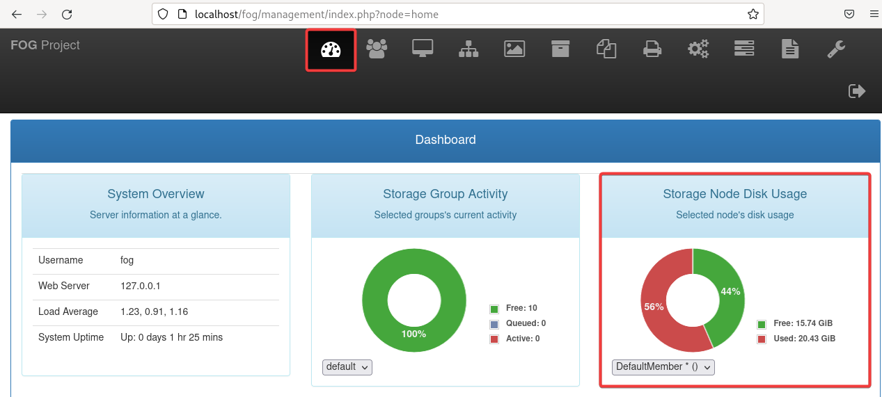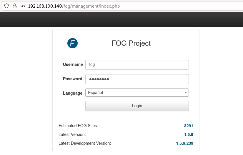 Introducimos las credenciales para continuar. En mi caso, son las predeterminadas: fog:password.