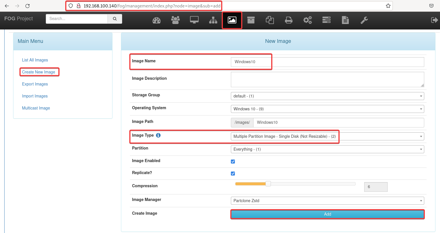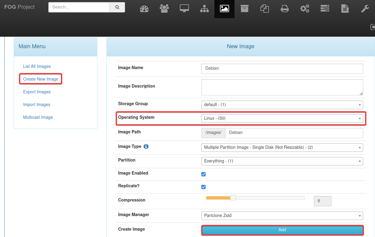 Primero, crearemos una nueva imágen indicando el sistema operativo que vamos a clonar.
