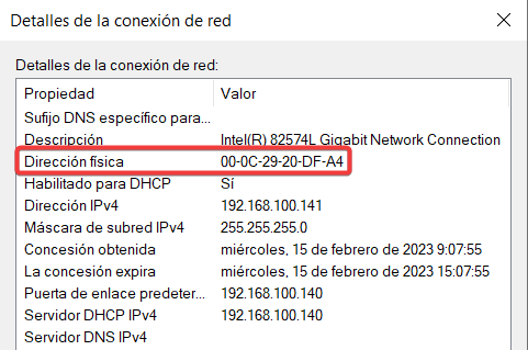 Búscaremos la dirección MAC en el equipo que queremos clonar.