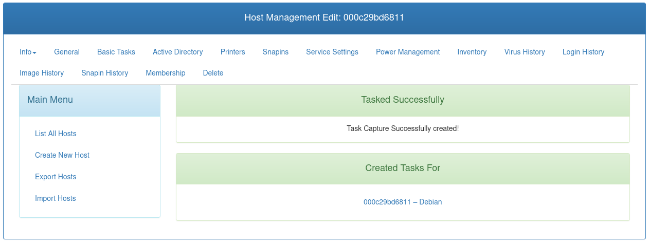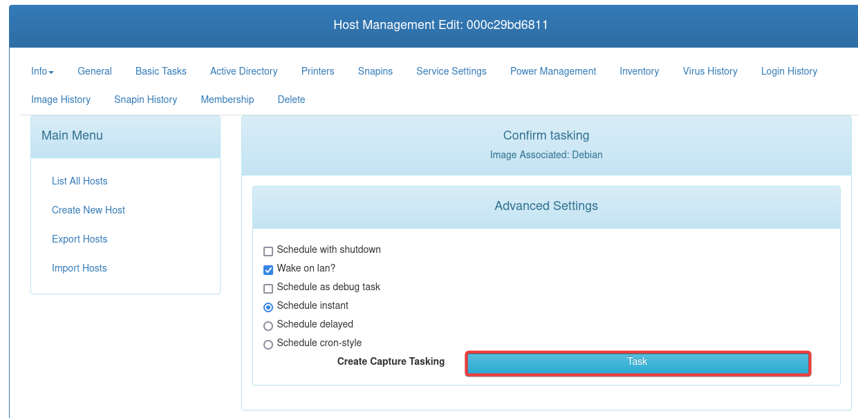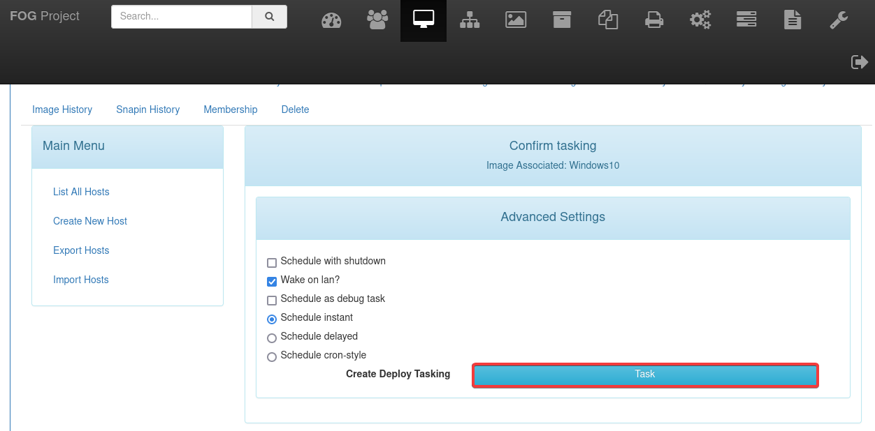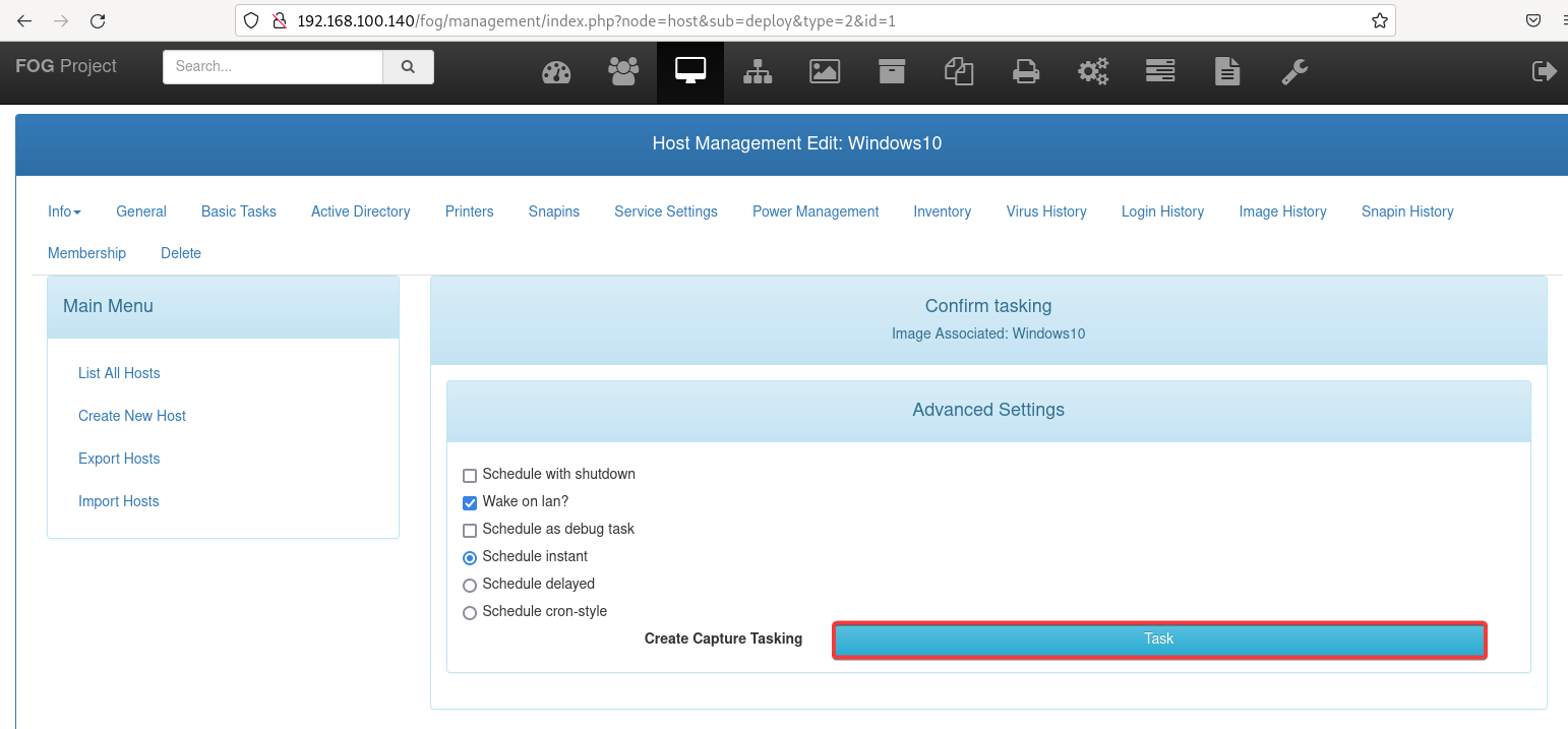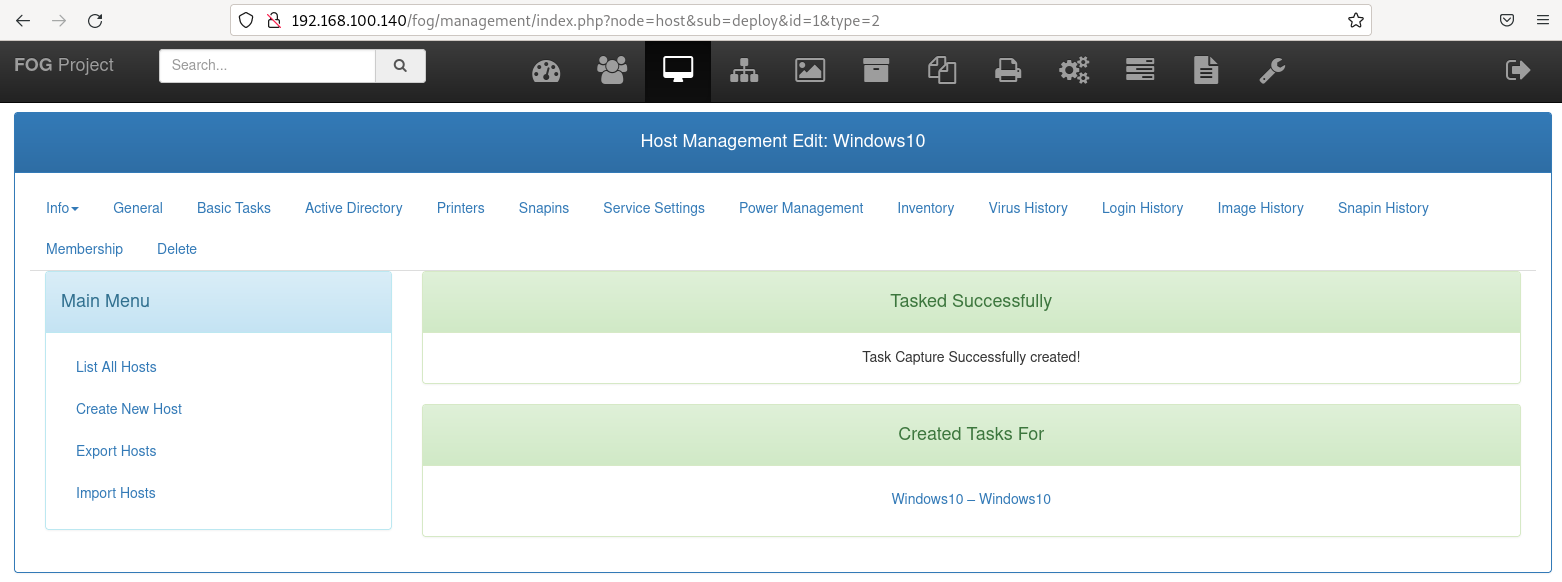 Observaremos que se ha registrado en el panel de control. Después, creamos una nueva tarea para capturar la imágen de este equipo.