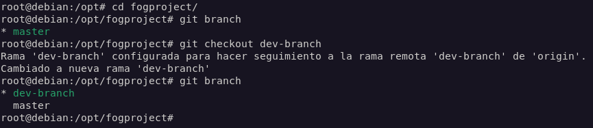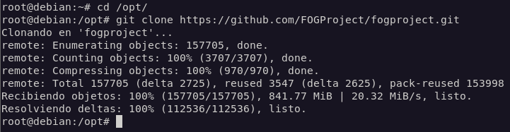 Para instalar Fog Project , descargaremos el repositorio en la carpeta /opt/.