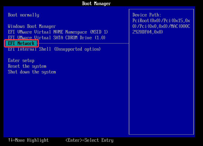 Ahora, iniciaremos el cliente Windows 10 desde la interfaz de red.