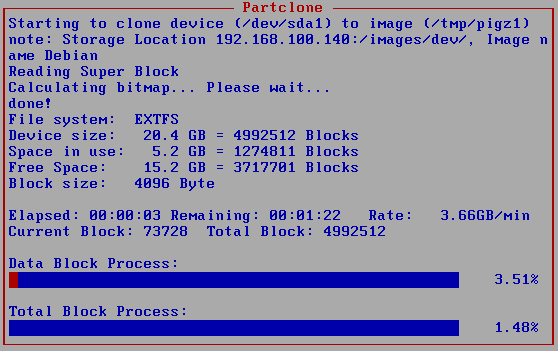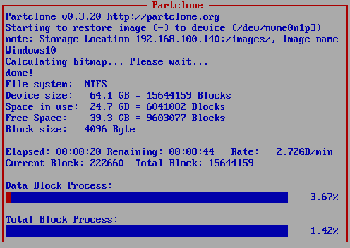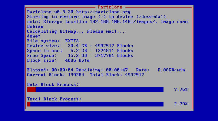 Arrancaremos el mismo equipo desde la red y esperaremos a que se termine de clonar.