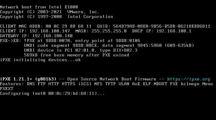 Arrancaremos otro cliente mediante la red, sin sistema operativo con un disco duro de la misma capacidad.
