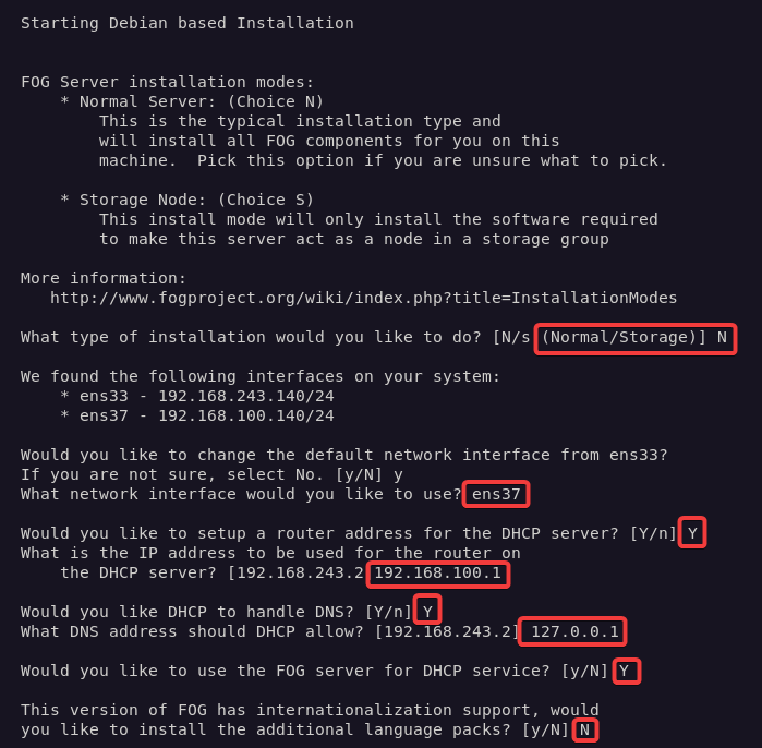 Luego, indicaremos la instalación normal, la interfaz de red local y activaremos el DHCP.