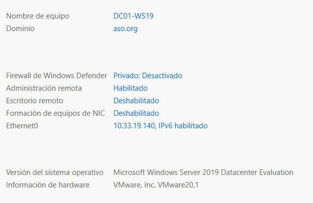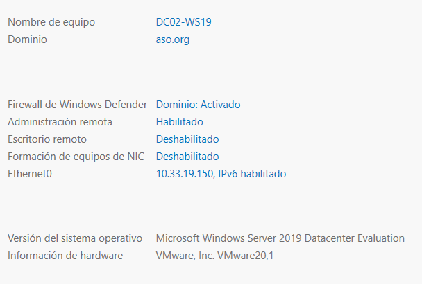 También tendremos otra máquina virtual Windows Server 2019 añadido al dominio aso.org