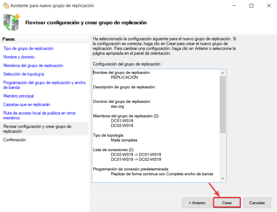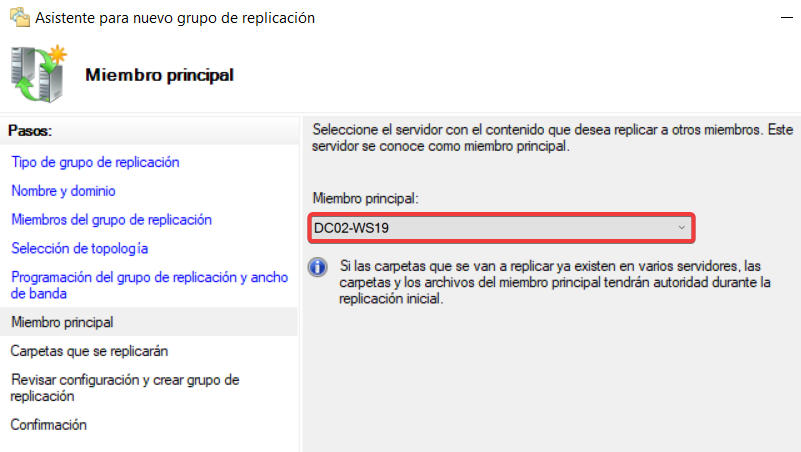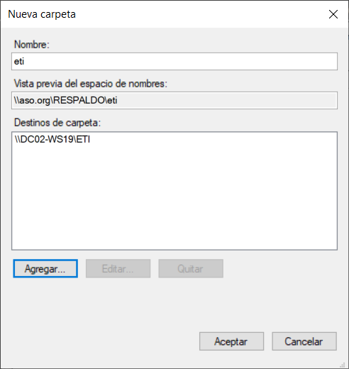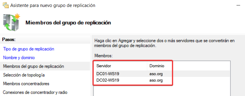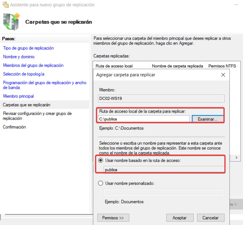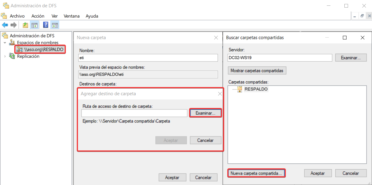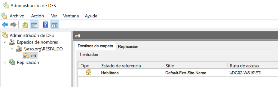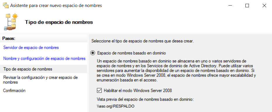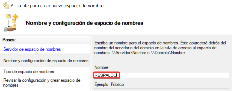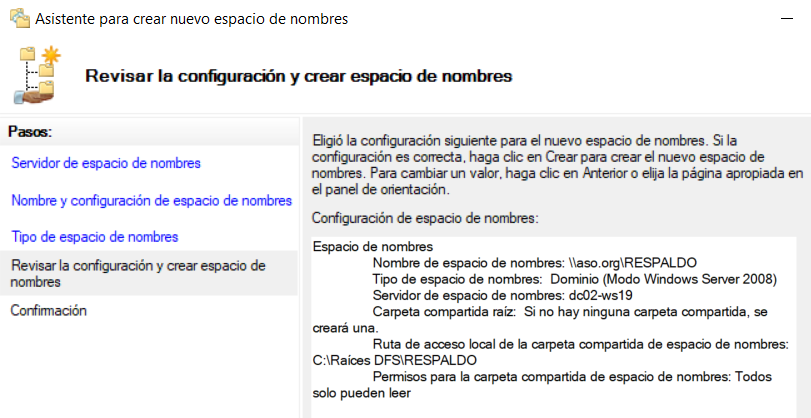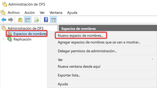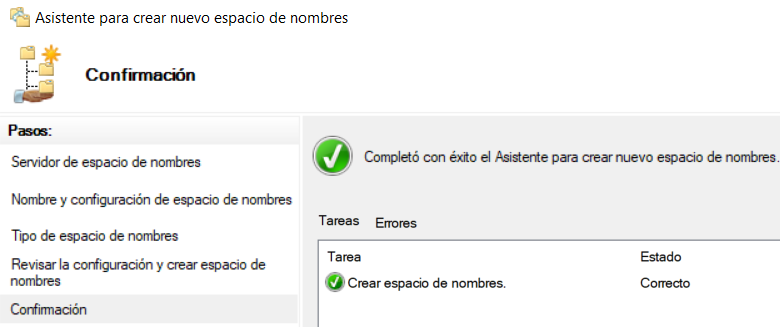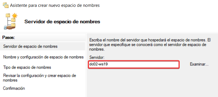 Una vez se haya instalado el rol en DC02, crearemos un nuevo espacio de nombres.