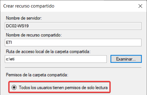 En este caso solo permitiremos la lectura para todos los usuarios.