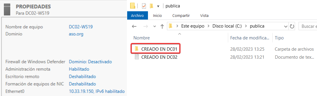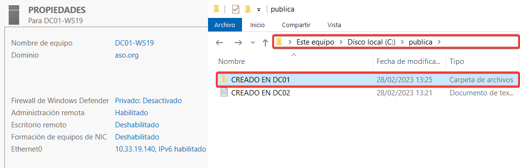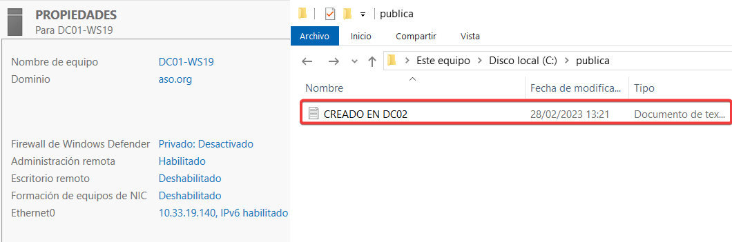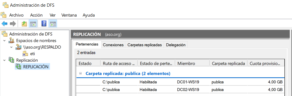 Comprobamos que se ha creado el grupo y las carpetas replicadas.