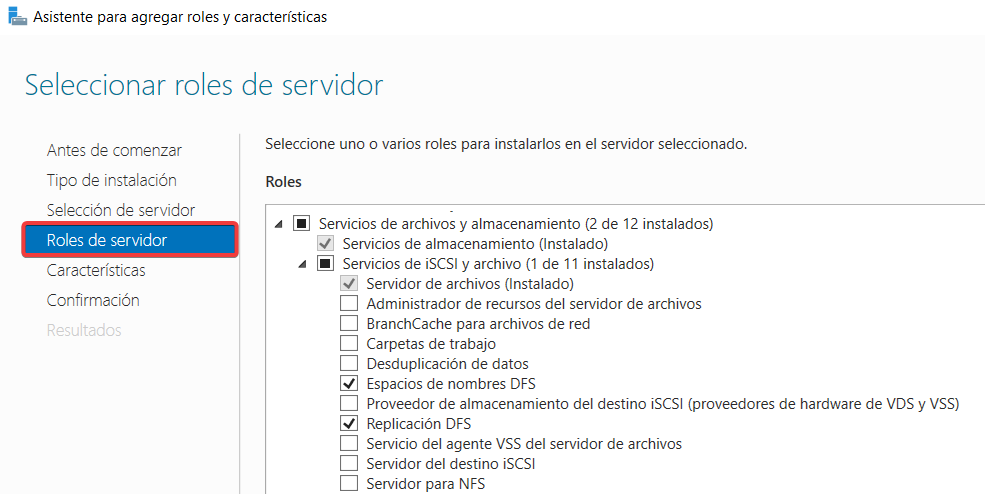 Ahora, instalaremos los roles necesarios para usar DFS en el servidor DC02.
