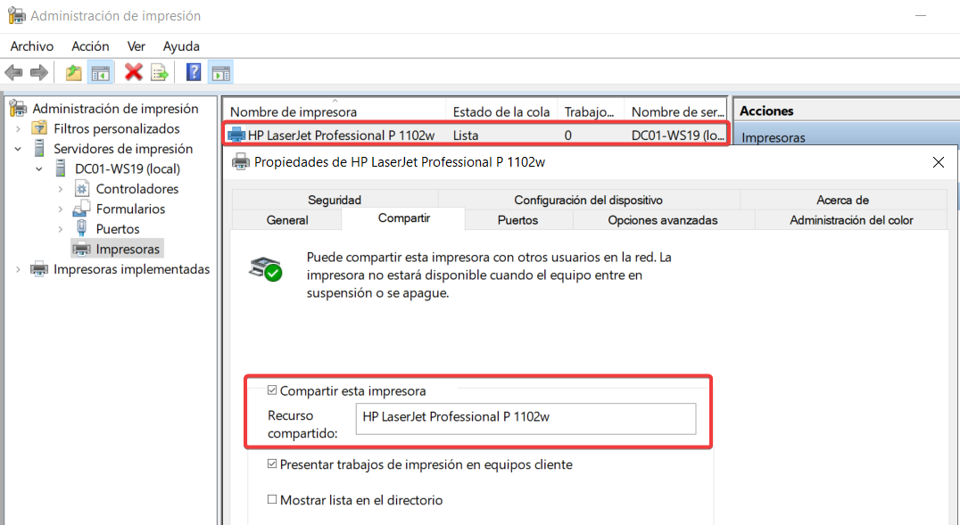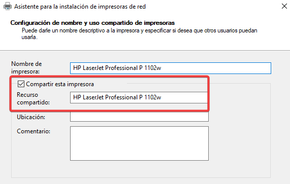 Nos aseguraremos que estamos compartiendo esta impresora.