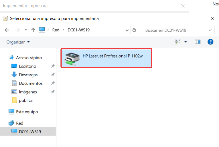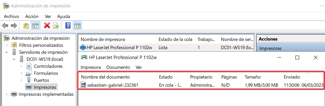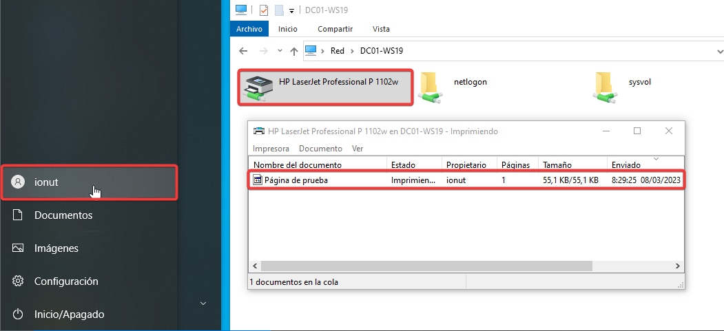 Por último, imprimiremos una imágen y seleccionaremos la impresora del dominio.