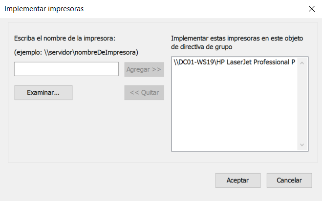 Añadiremos la directiva de grupo que acabamos de crear a esta impresora.
