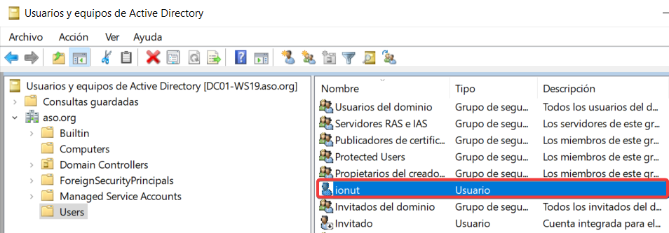 Para hacer las comprobaciones, crearemos un nuevo usuario llamado ionut