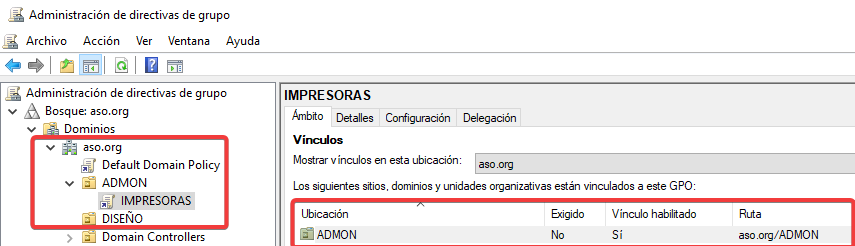Después, cambiaremos la GPO que hemos creado antes para que solo los objetos dentro de la Unidad Organizativa ADMON