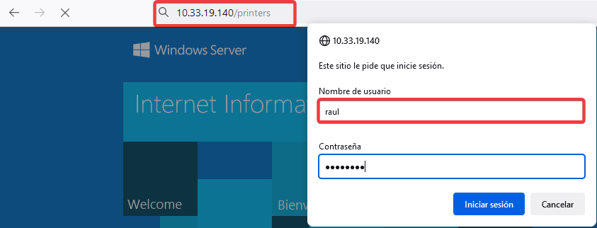 Intentaremos acceder mediante un navegador a la ruta, accediendo con las credenciales del usuario raul