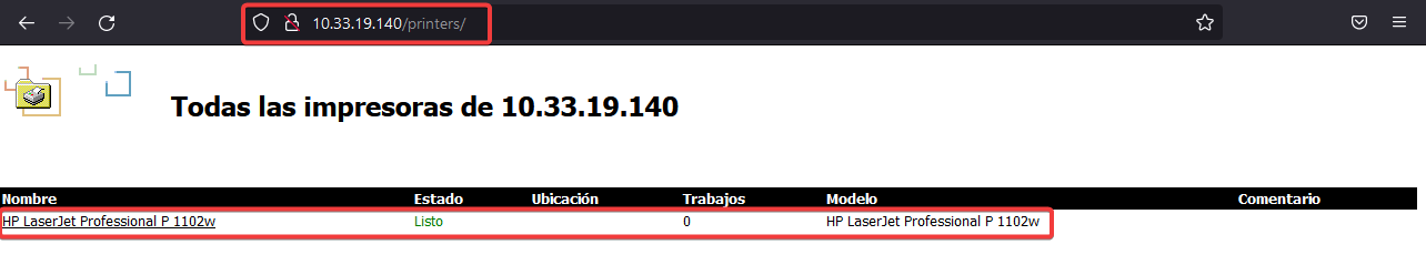 Nos aseguramos que el servidor de impresión está seleccionado.
