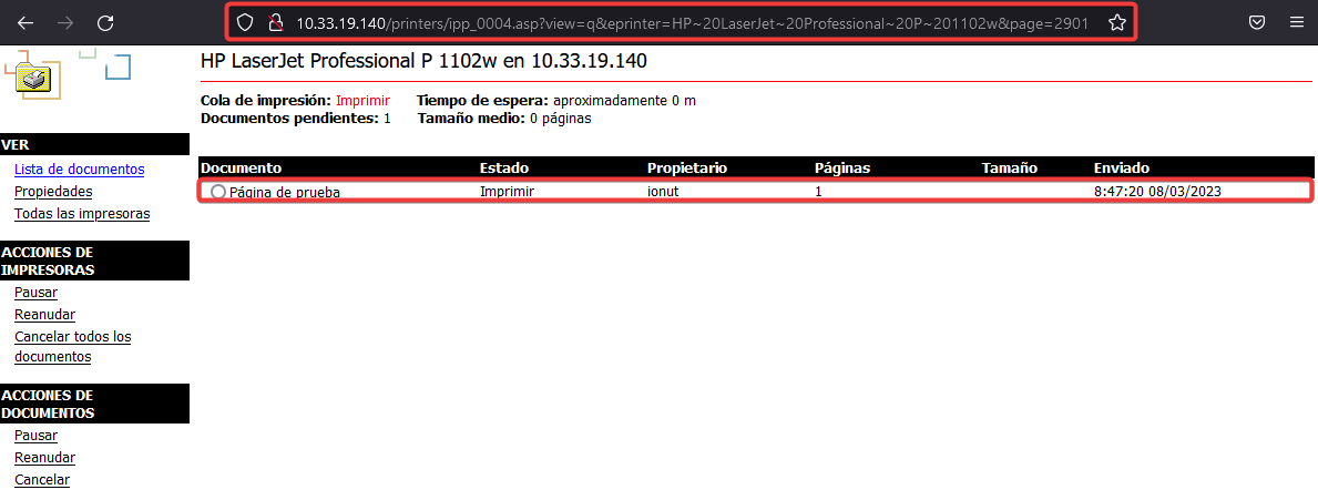 Imprimiremos otra página de prueba y observaremos que aparece en los dispositivos del cliente…
