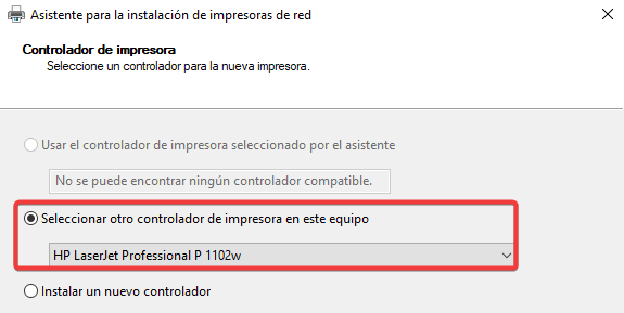Seleccionamos nuestra impresora. (La veremos aquí si la hemos compartido antes)